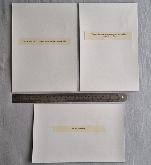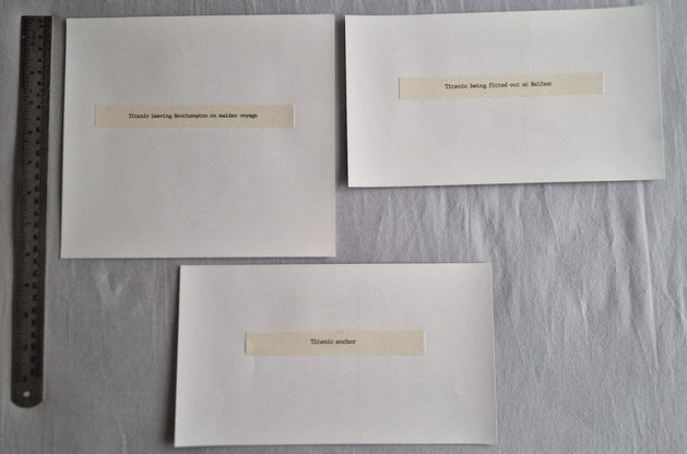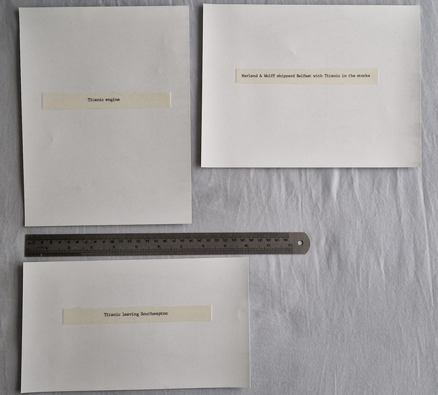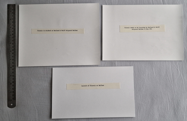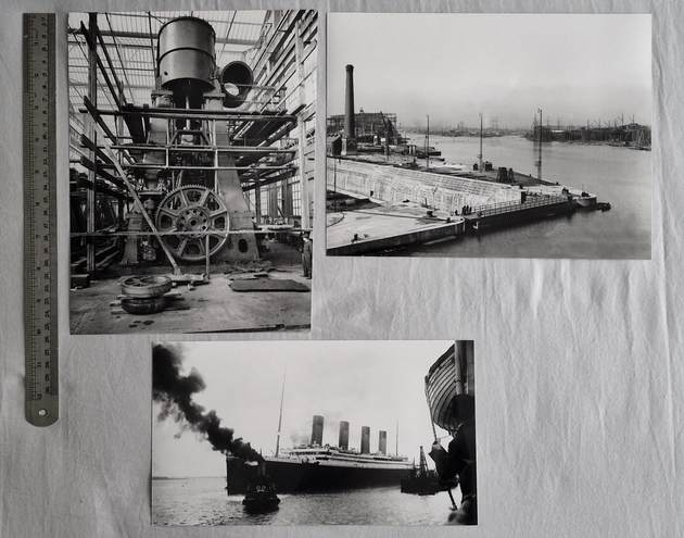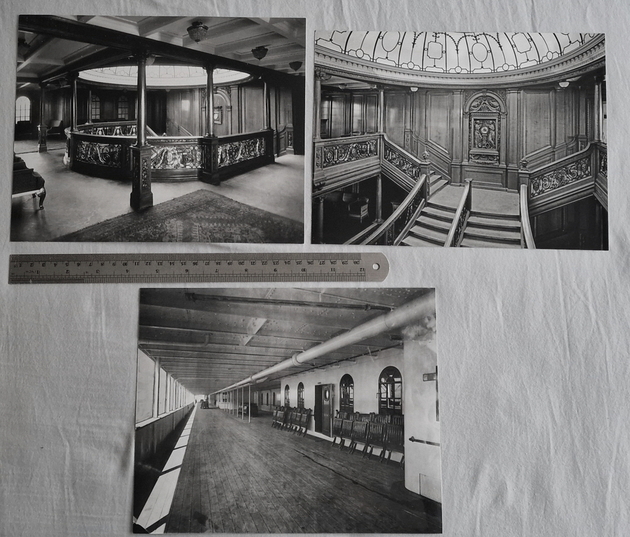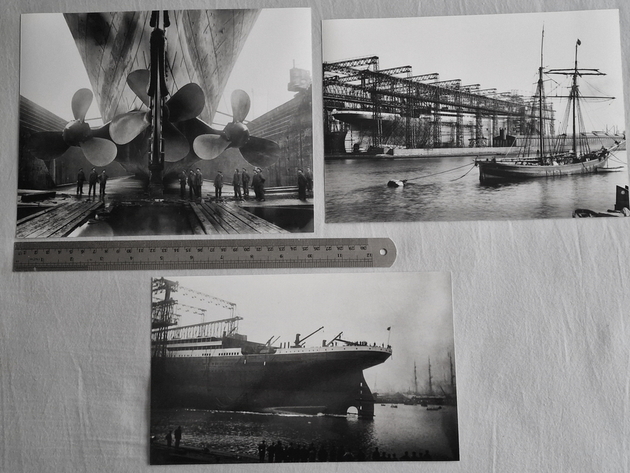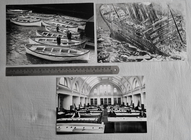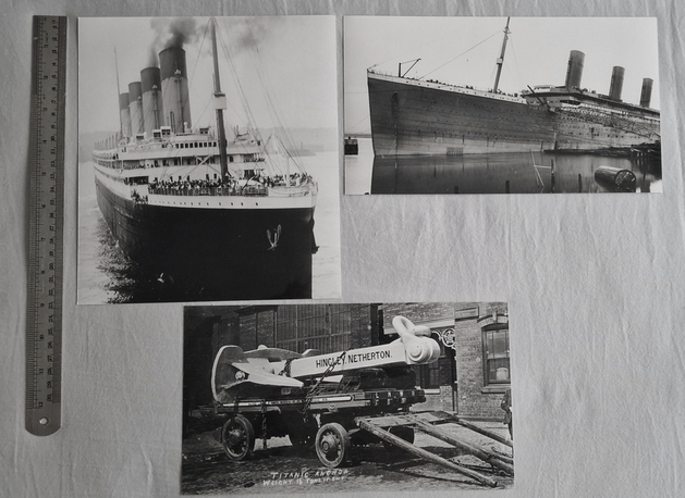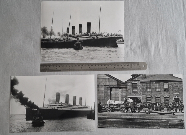 Photographs of Titanic and Carpathia these are not original early photographs but produced in more modern times, they are genuine photographs and not home produced computer prints. The photos that you see here were taken with a phone camera and compressed to fit the web site, there is a ruler in the photos to help show you the photographs size.